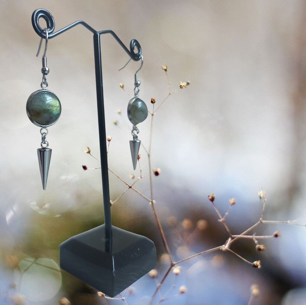Jolies boucles en acier inoxydable hypoallergénique & labradorite de 10 mm
