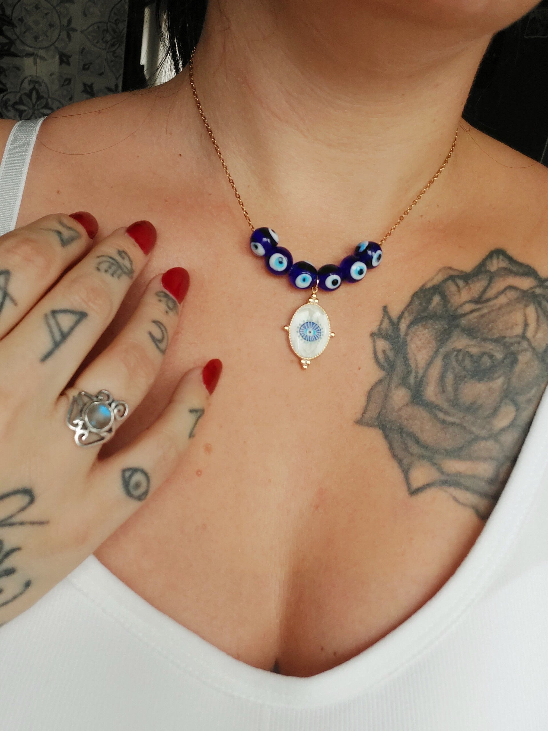 L'oeil bleu de Nazar est un symbole de protection puissant qui dissipe les influences néfastes et éloigne les mauvais esprits.