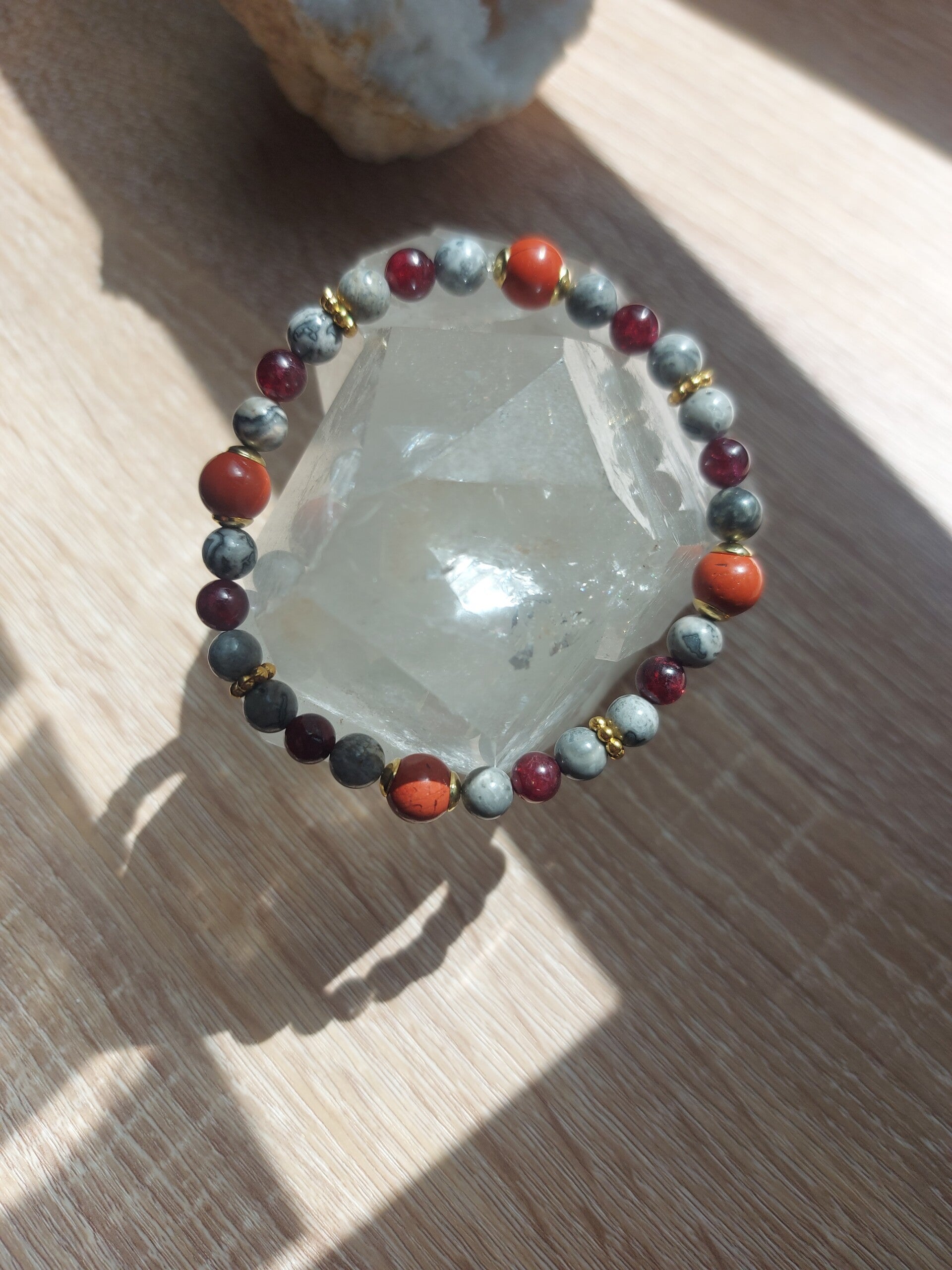 ♡ Le jaspe Picasso serait avant tout une pierre d'ancrage. Il aiderait à reconnecter le corps et l'esprit avec la Terre, apportant ainsi un sentiment de sécurité et de stabilité. Cette pierre serait idéale pour ceux qui se sentent perdus, déconnectés ou qui traversent des périodes de turbulences émotionnelles.
