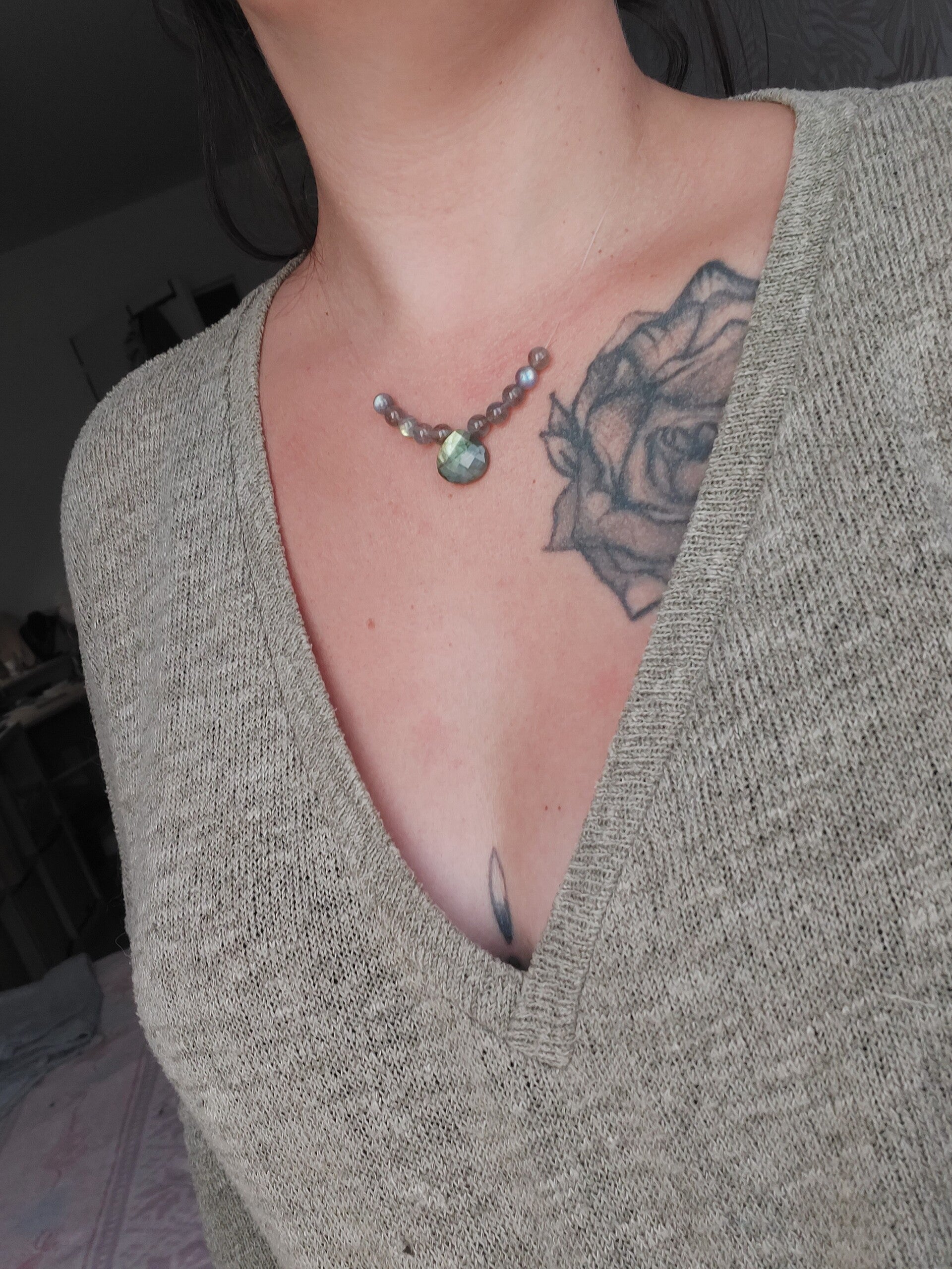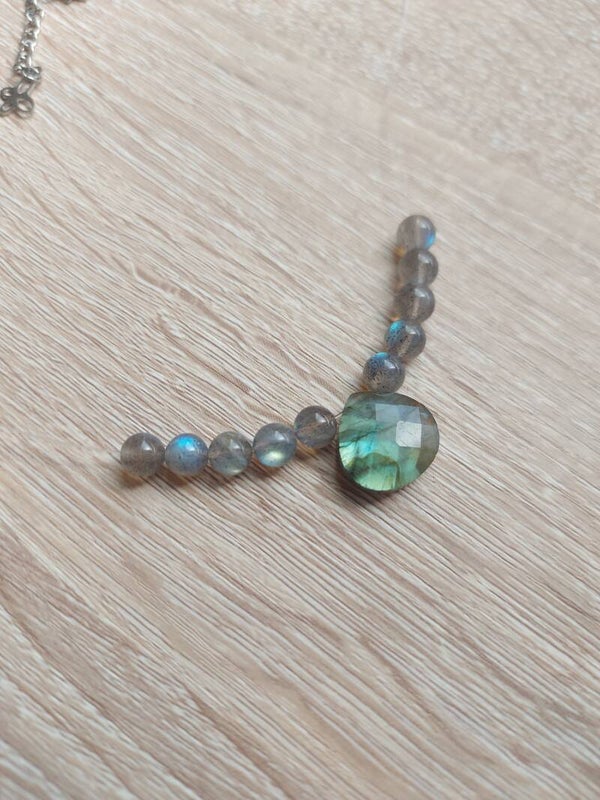 Craquez pour ce petit collier épuré, orné de labradorite de qualité extra