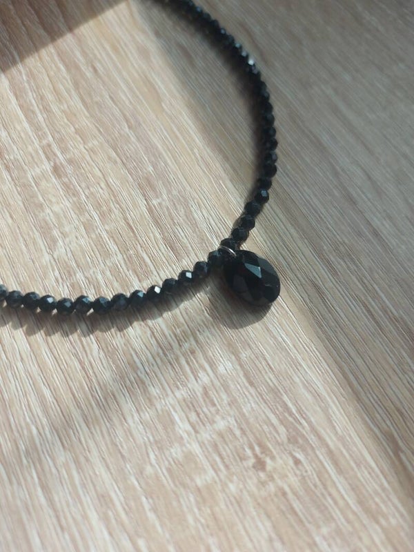 Ras de cou en spinelle noire facettée