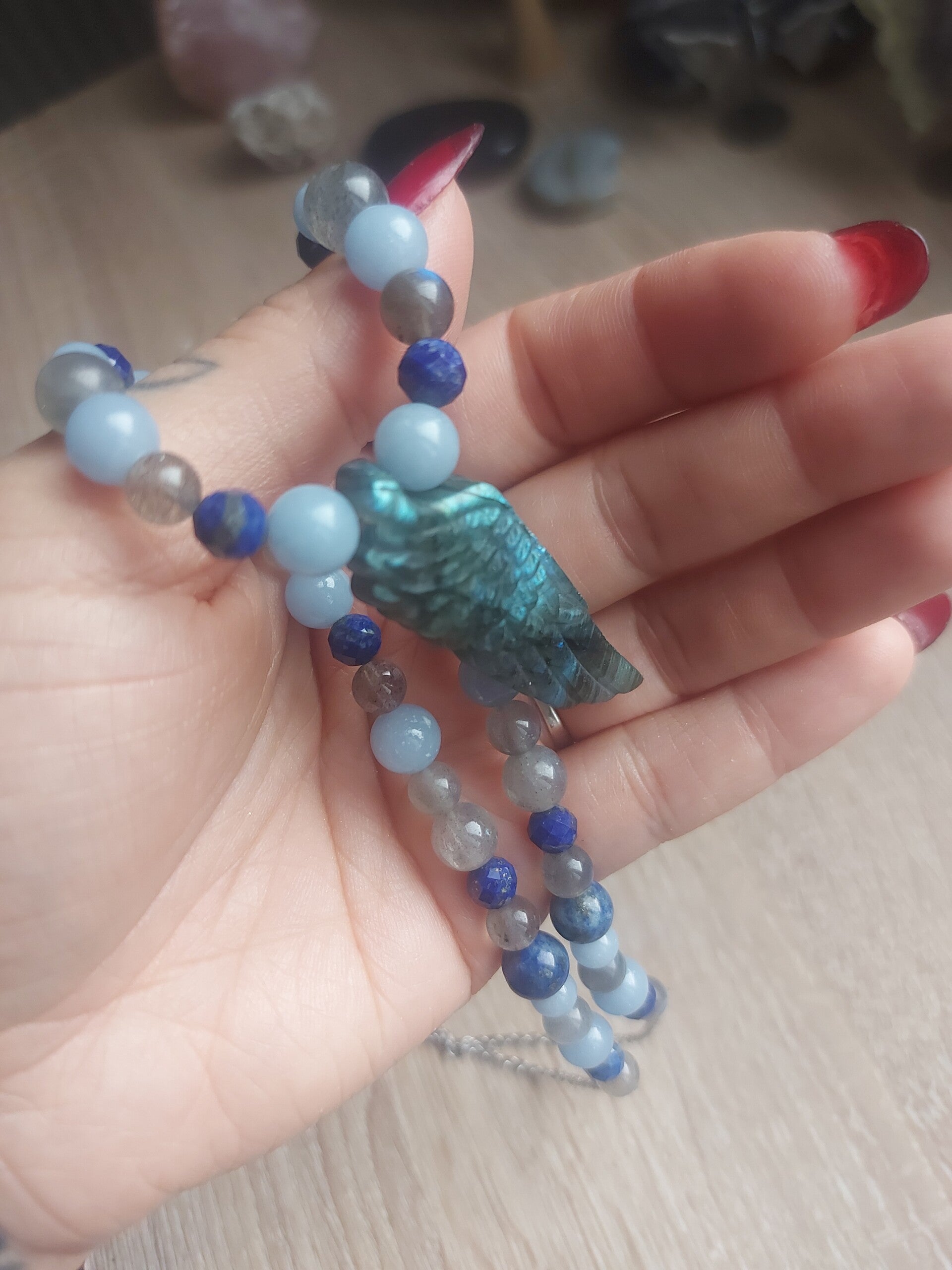 Collier "Cosmic" en labradorite, angélite & lapis-lazuli