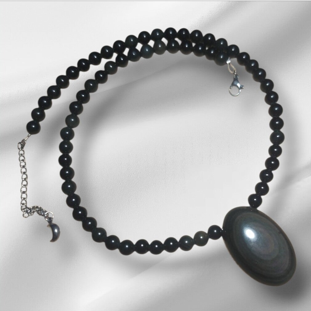 L’obsidienne œil céleste permet l’ouverture du chakra du 3ème œil (Ajna) tout en nous permettant de nous ancrer profondément à la Terre. Pierre naturelle au haut pouvoir spirituel, elle augmente nos capacités extrasensorielles comme la clairvoyance, notre perception des énergies subtils et la médiumnité. L’obsidienne œil céleste nous aide à nous reconnecter avec notre propre identité et à assumer nos choix personnels.