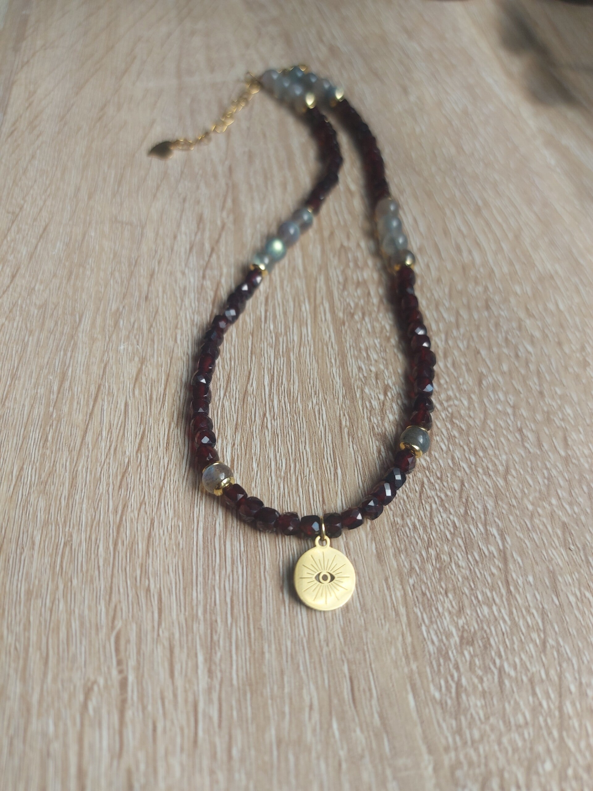 ♡ Taille des perles: Grenat 4,5-5 mm et labradorite 6 mm