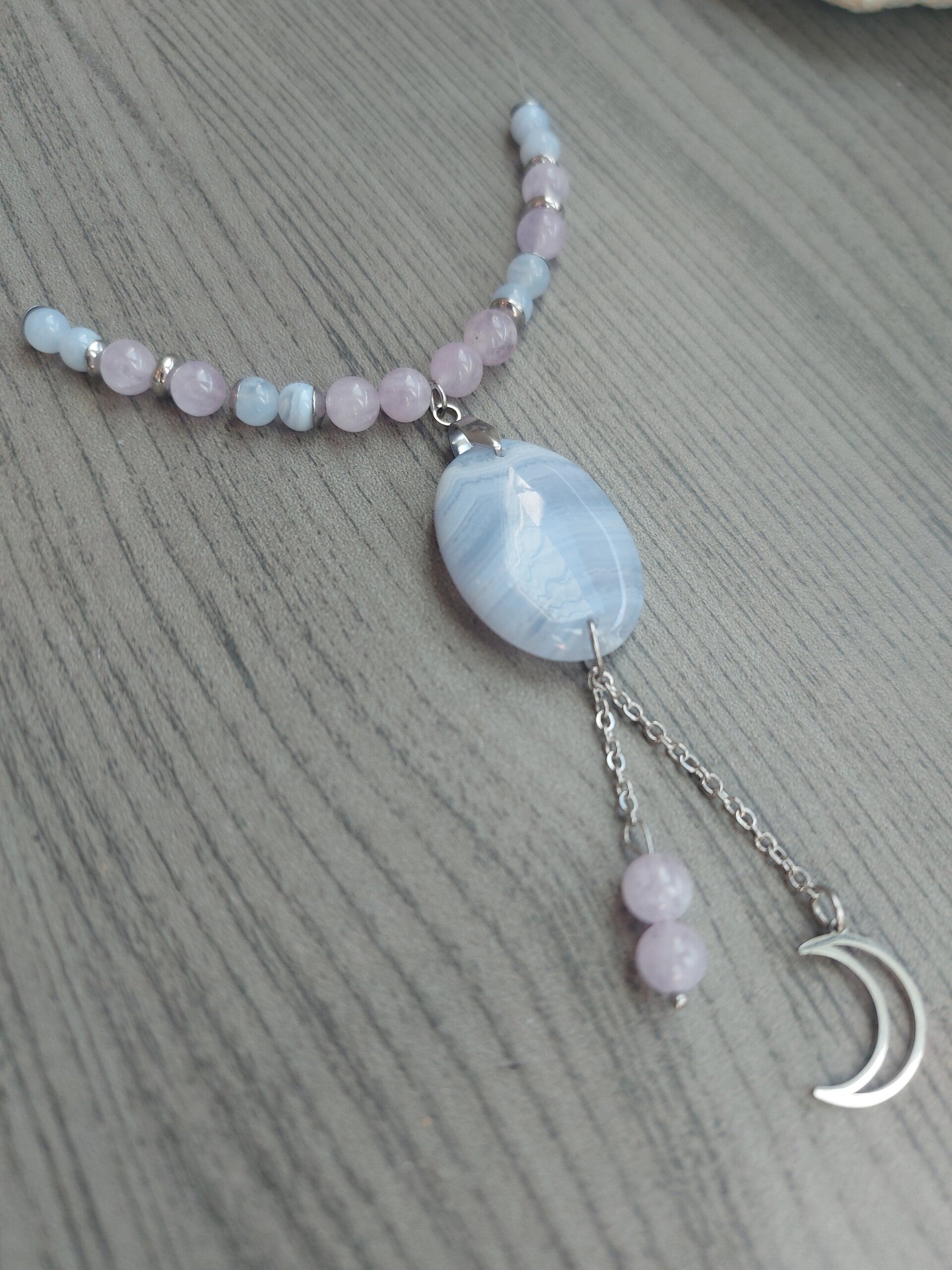Collier " Zen" en calcédoine bleue et quartz lavande