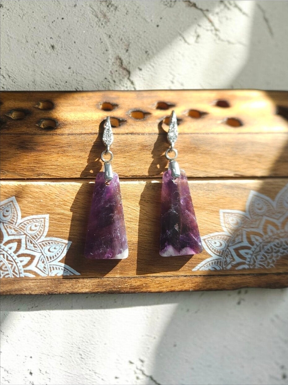 L’améthyste porte en elle la sagesse des nuits étoilées. Sa lumière violette apaise les pensées, protège l’âme et ouvre les portes de l’intuition. Dans ces boucles, elle brille comme une goutte de crépuscule, douce et mystique, rappelant que la paix intérieure est un refuge toujours accessible. Elle accompagne celles qui cherchent la clarté, la sérénité et la guidance des mondes subtils.