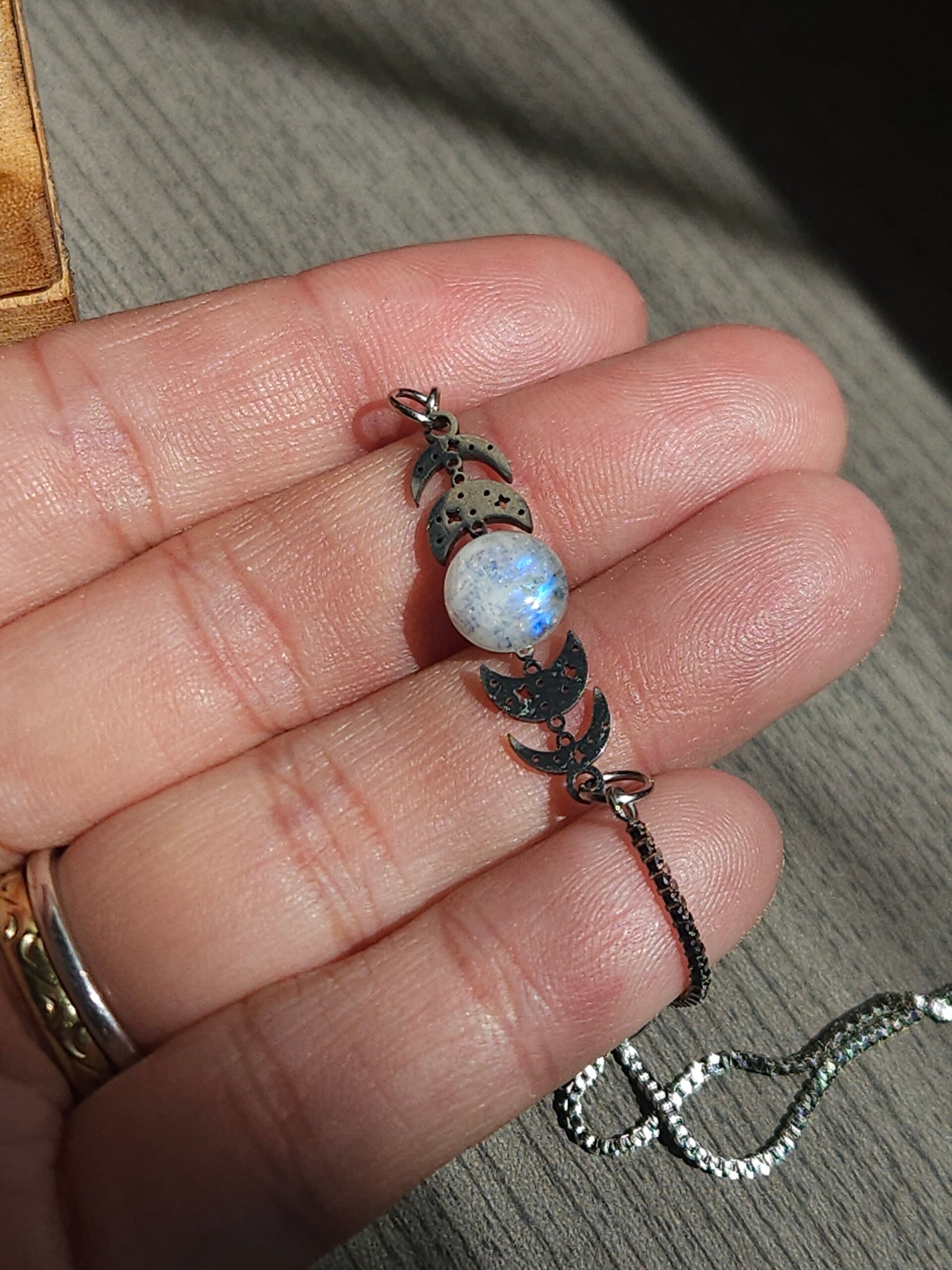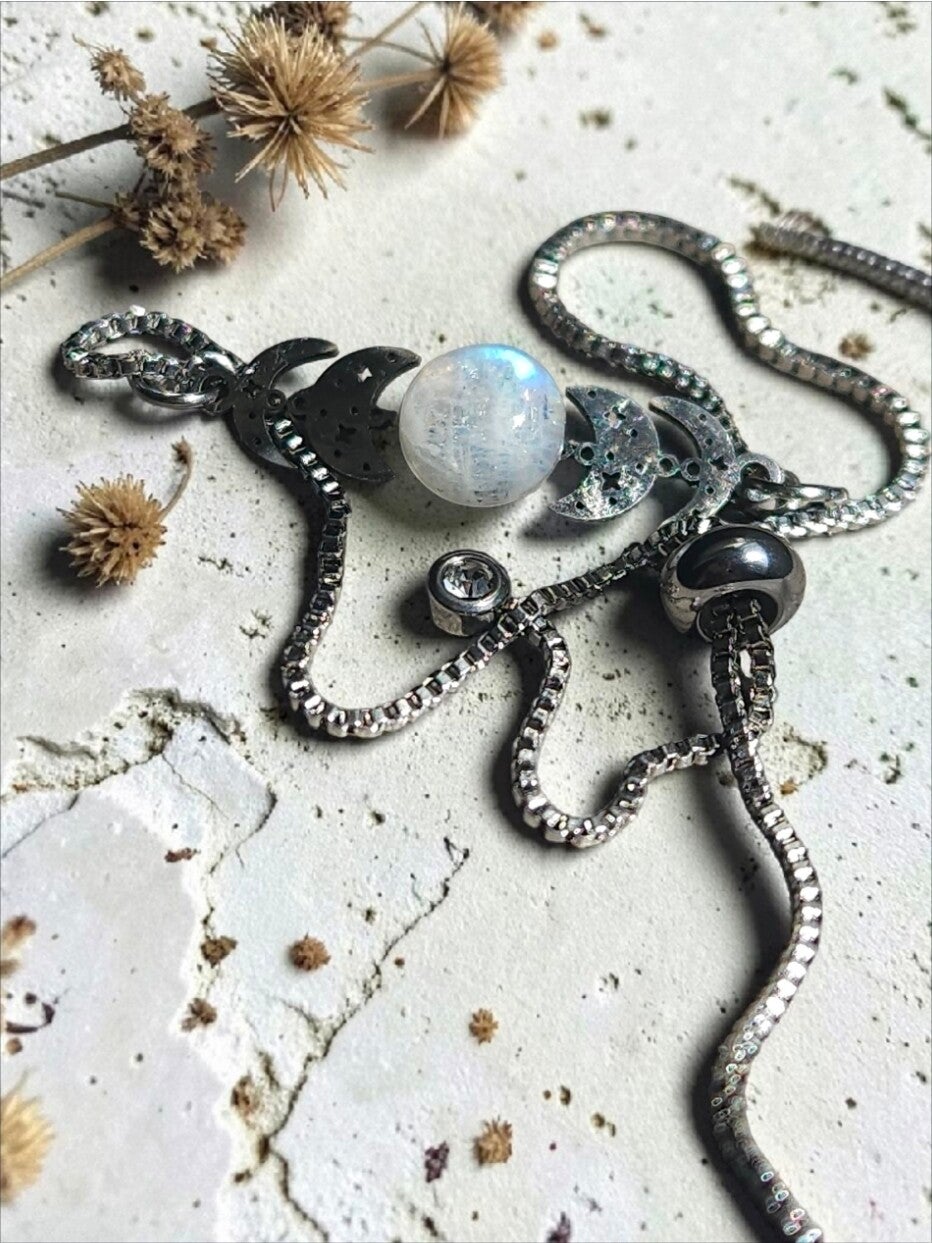 Ce bijou est une célébration de la femme cyclique, sensible et lumineuse — un rappel que chaque phase a sa beauté, et que ton chemin se tisse entre ombre et clarté.
