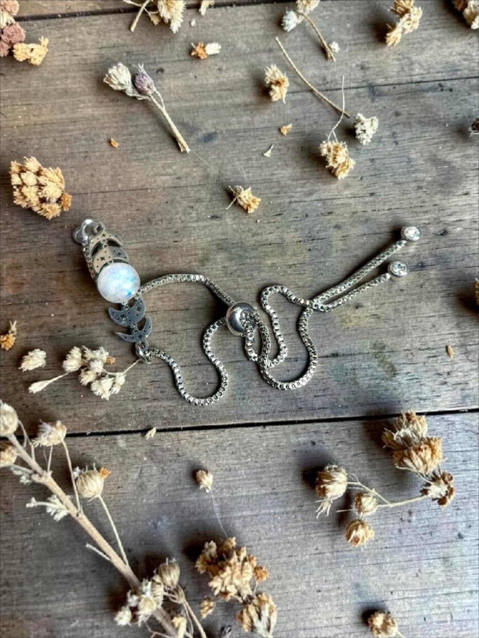Sous la danse silencieuse des astres, ce bracelet s’ajuste à ton poignet comme un talisman intime.